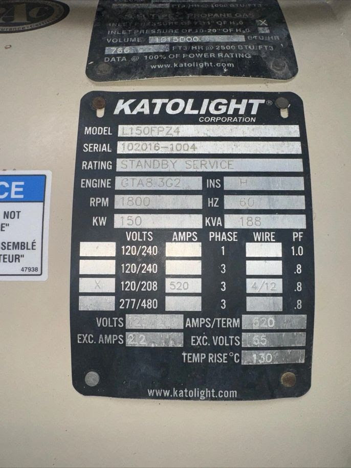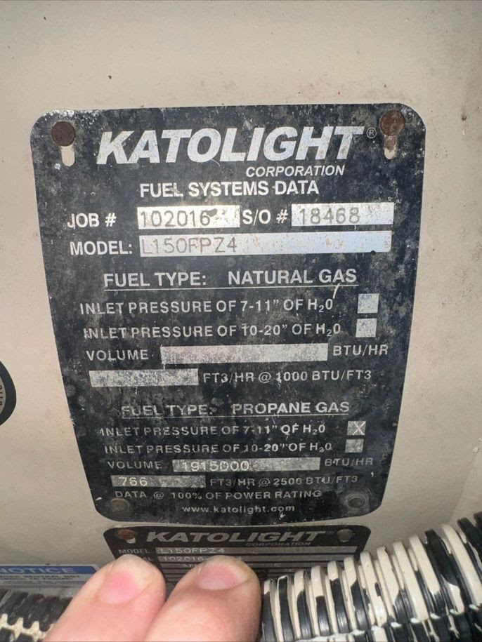 2004 Cummins/Kato 150KW Gas Enclosed Generator