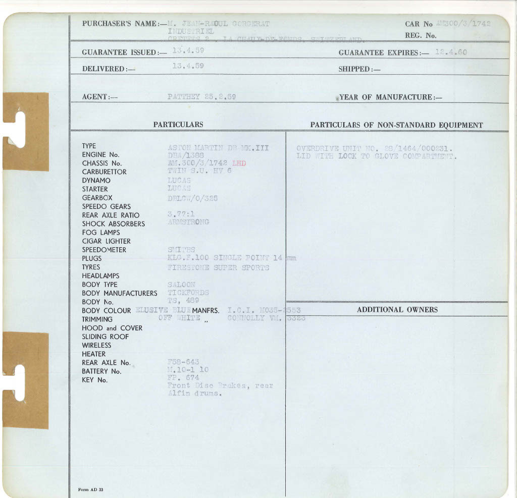 1959 Aston Martin DB MK III Factory LHD