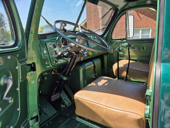 711 diesel engine non turbo. Duplex transmission, all upgraded radial tires and rims. Has park brake cans. Drives very nice. All new electrical and batteries. Interior is complete minus a headliner. Turns heads everywhere. Less than 8000 built. Have build sheet and history from the Mack assembly plant. Very nice truck!!!