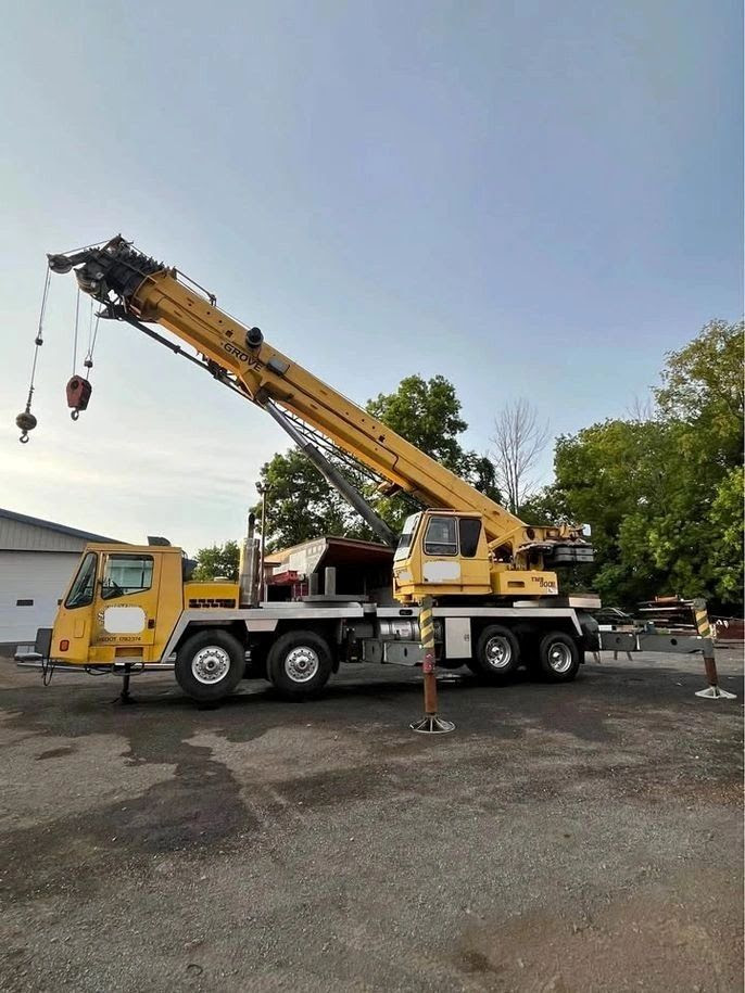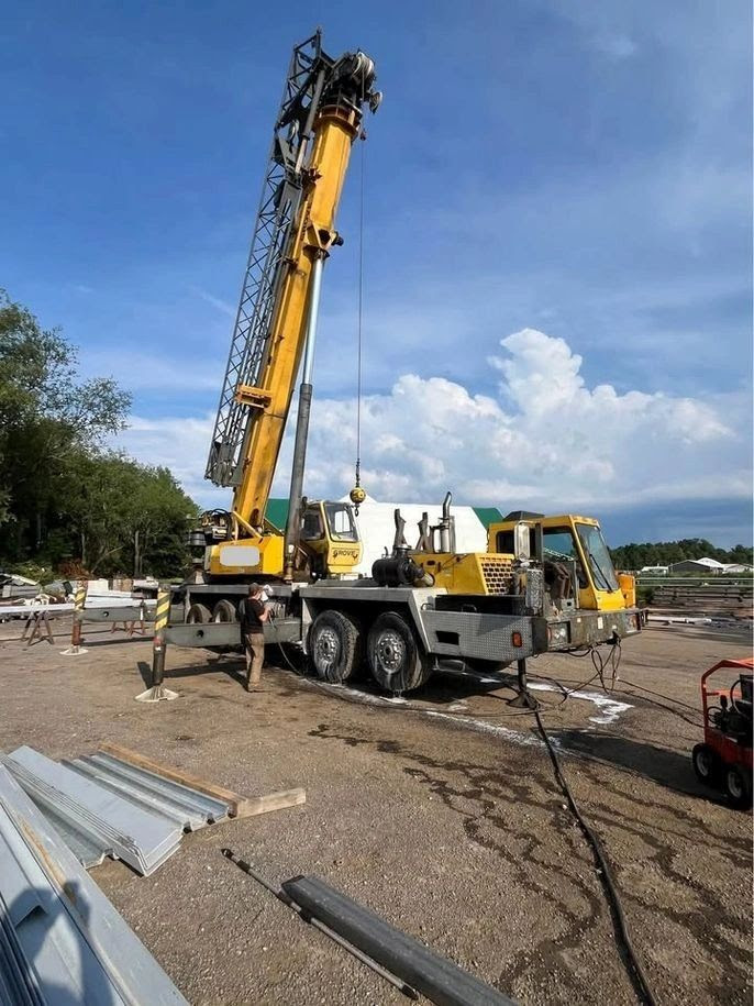 Crane has a full pining boom with max boom at 142ft Crane comes with full counterweight package - 31,500lbs Crane comes with 2 piece, manually offset able jib - 61ft Crane comes with headache ball + 1 shive block.