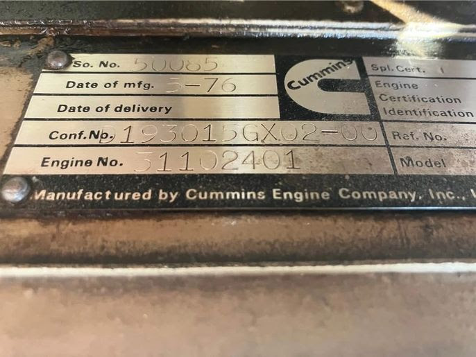1976 Cummins KTA-1150 tied to a 350KW/437KVA, 3-Phase Generator, 120/208 Volt, comes with 1,000 Amp Disconnect, 262 Hour, It was backup generator for Hospital, only ran mostly for monthly tests, Stored indoors whole life, Have all service records/paperwork on equipment, Comes with 50 gallon day tank.