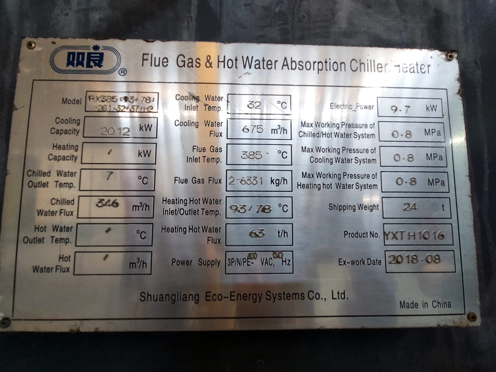 Available for sale: Approx. 570 TR Shuangliang Flue Gas & Hot Water Absorption Chiller – Karachi