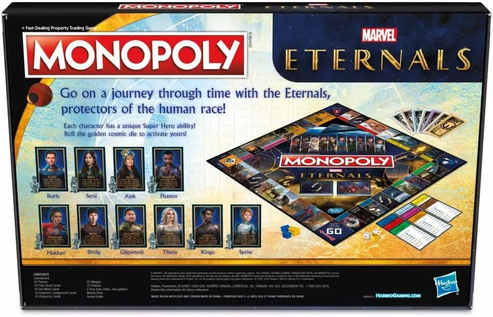 Monopoly: Marvel Studios Eternals Edition Board Game for Marvel Fans, Game for 2-6 Players, Kids Ages 8 and Up.