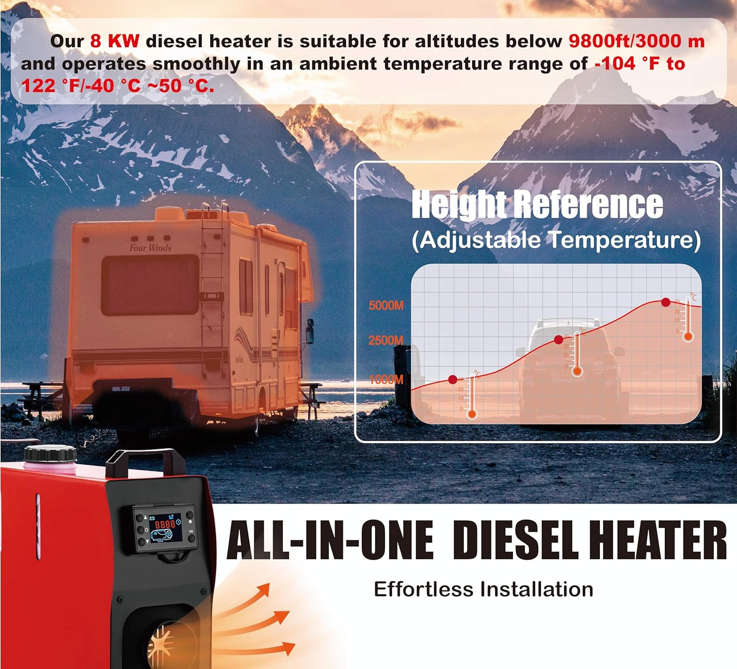 WIPPRO Diesel Heater 8KW, 12V Diesel Heater All in One, Diesel Air Heater with LCD Switch, Remote Control, Diesel Heaters for Campers, Car, RV Truck