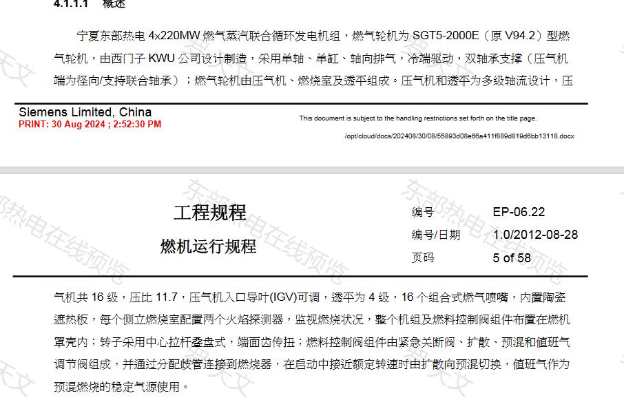 Siemens Turbines:SGT5-2000E,year:2012 , Dry Low Nox