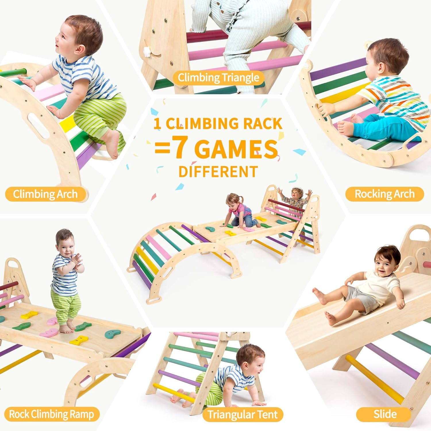 RMOKA 7in1 Extra Large Pikler Triangle Set, Indoor Climbing Toys for Toddlers, Foldable Wooden Montessori Climbing Set with Arch, Ramp & Ladder Baby Indoor Playground Jungle Gyms for Toddlers.