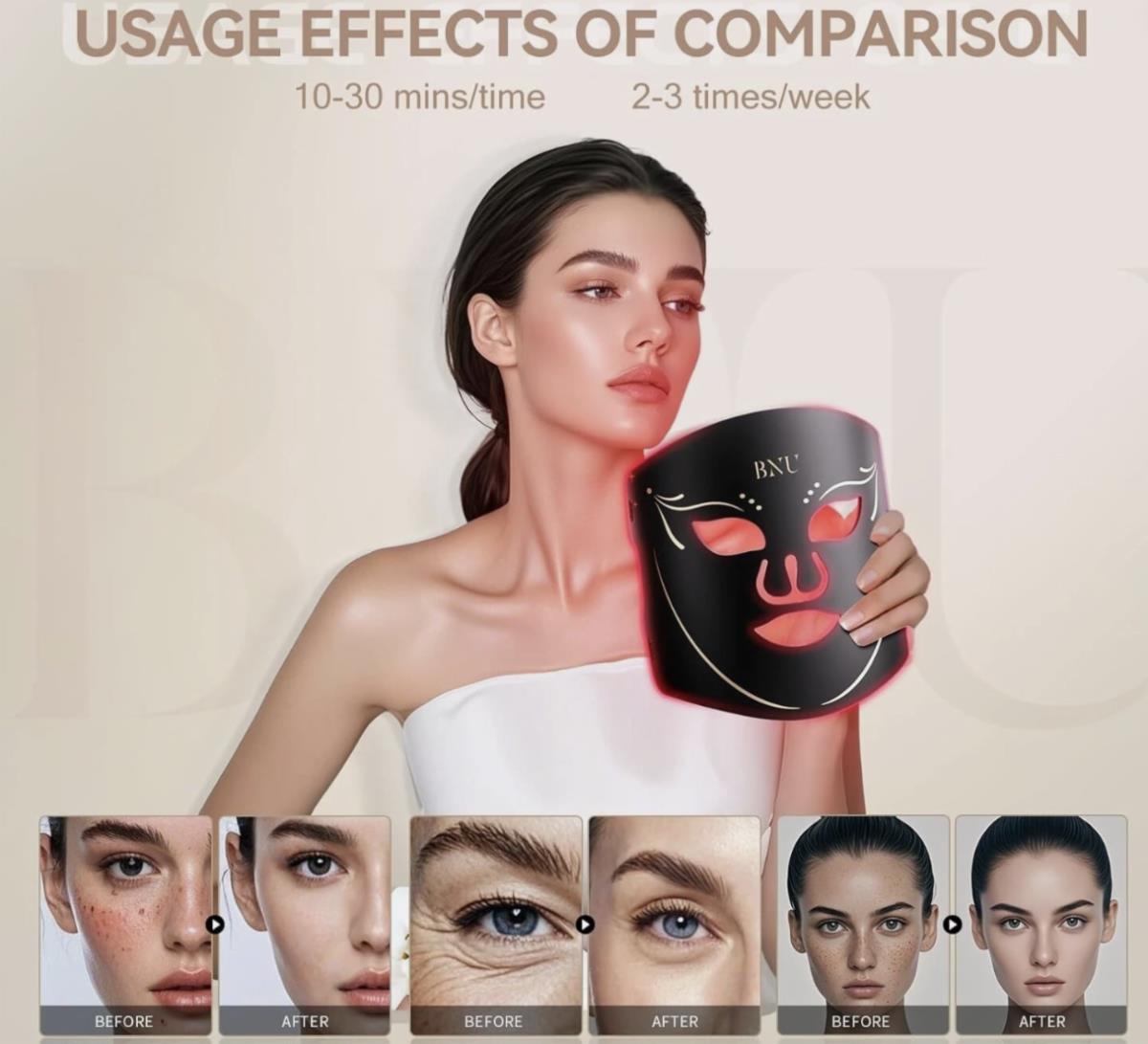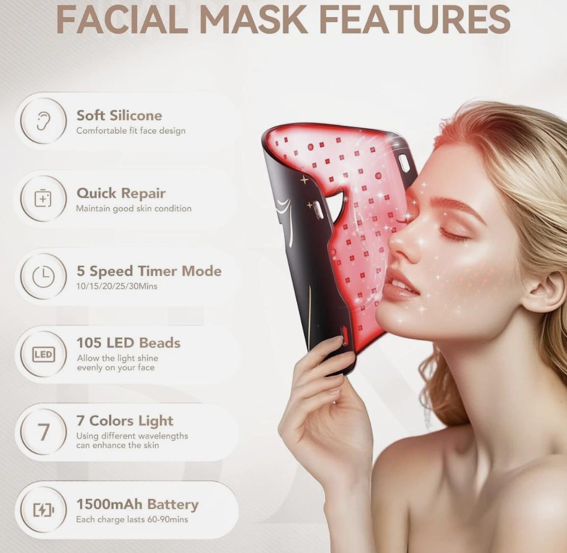 Redefined Skincare Revolution: Experience the unparalleled magic of home-based professional skincare with Red Light Therapy Mask. Its 272 medical-grade LEDs emit an impressive 105mW/cm², turning the device into your ultimate secret weapon against acne and aging. Step into a new era of smooth, firm, and youthfully elastic skin, all powered by our industry-leading technology.