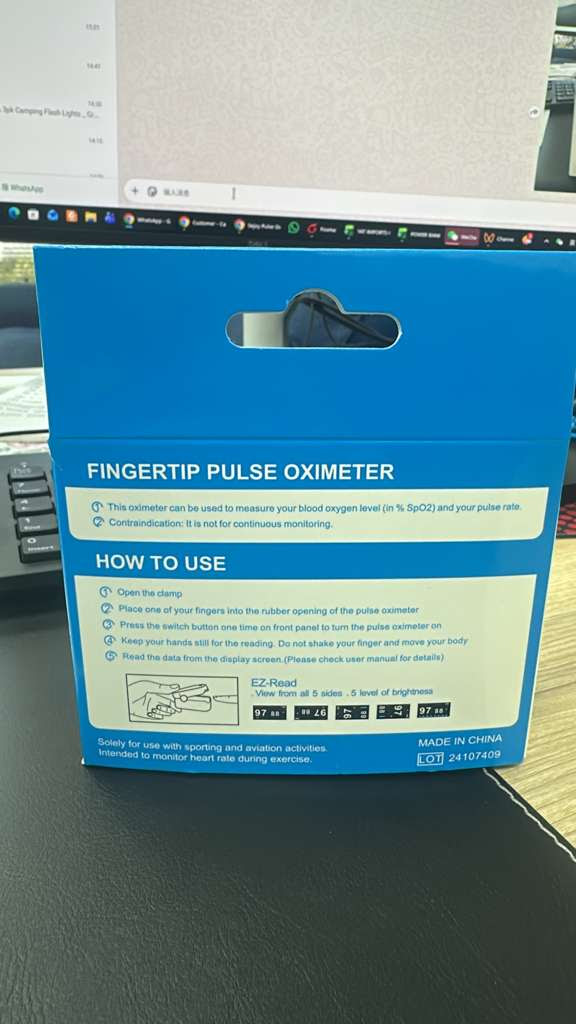SEJOY Fingertip Pulse Oximeter. 1200 Units. EXW Los Angeles $4.50 Unit. Original retail $16.99 (On sale now $9.99)