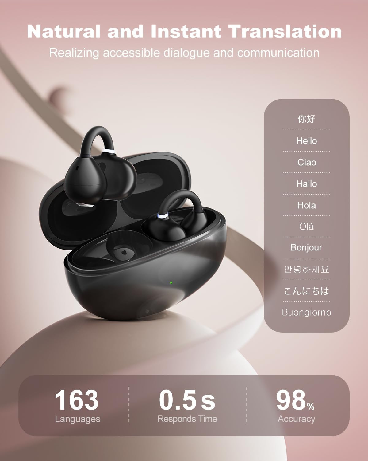 AMINY AI 163 Languages & Accents Translator Earbuds.