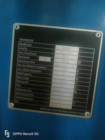 MWM TCG 2020V16 - 2000 KW , Year 2013 - Ref : P /AA-94 - KL - 24.2.2026