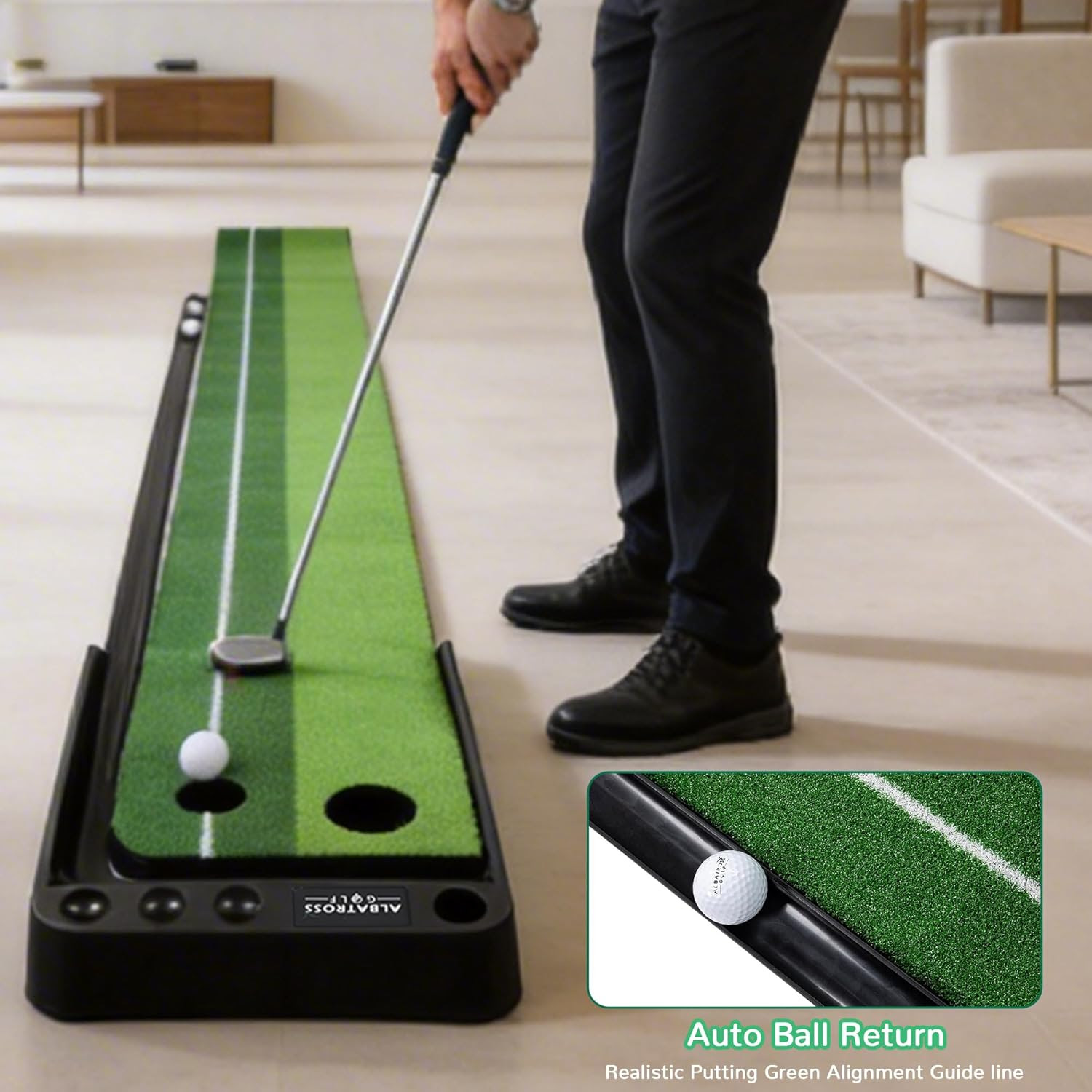 Fitvids Premium Automatic Ball Return Golf Putting Mat, Portable Indoor Golf Practice Green with Alignment Guide & Solid Base, Ideal for Home or Office and Golfers,