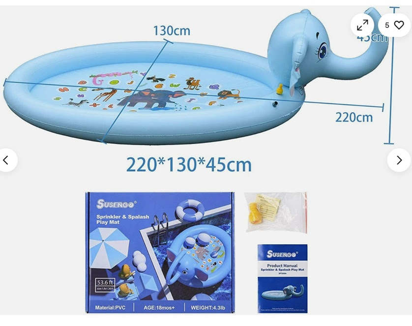 Splash Pads Sprinkler Mat (Elephant). 3000 Units. EXW Los Angeles $6.50 Unit. Retail $27.99