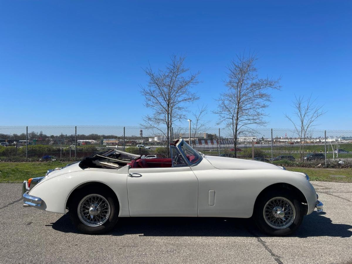 This 1958 Jaguar XK150 Drophead Coupe is a very solid, straight example that’s had significant investment already. Finished in white over a striking red leather interior, it benefits from brand new chrome and freshly redone upholstery, with much of the heavy lifting already completed.