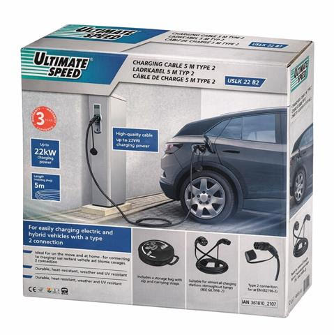 Includes standard European EV charging cables suitable for electric and plug-in hybrid vehicles, compatible with home chargers and public charging stations.