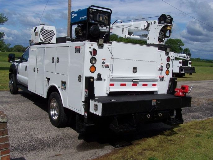 48,210 miles, IMT 3203i crane, 4000 pound capacity, Wireless remote , Miller Bobcat 250 welder, Only 179 hours on welder, Lube skid with hoses and reels , 2 x 40 gallon product tanks , 1 x 40 gallon waste oil tank w/ recovery system, Honda 340 gas air compressor with key start , 2016 IMT tool / service body , Rear work bumper Vise , Tool drawers , Tall cabinet for bottles, Powerstroke 6.7L diesel, Automatic, NEW steer tires, Rear tires very good , Good seats, All glass good, Cold A/C, Nice and work ready!! 2 wheel drive!!