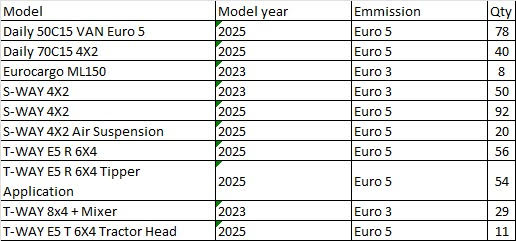 Engine : Iveco Cursor 13 F3HGE611 - 12.9 Liter displacement –Diesel