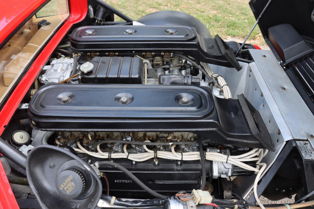 This 1978 Ferrari 512 Berlinetta Boxer is a desirable early carbureted model with just 16k miles (26k kilometers) from new. Red with tan leather interior. $50,000 in receipts included. A highly original example that runs well but needs a clutch installed in order to be roadworthy. A very clean example with nice paint and a beautiful interior.
