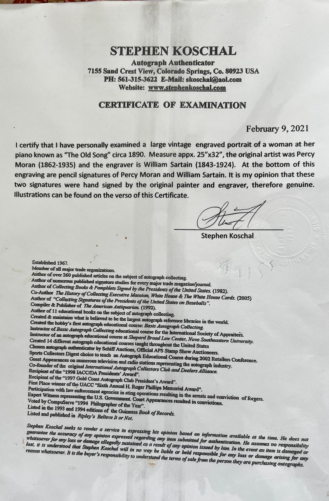 Percy Moran Original Artist (1862 -1935) – Engraver William Sartain (1843-1924)