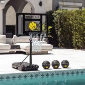ALL-IN-ONE: Our pool basketball hoop package features premium accessories including 3 composite leather basketballs, air pump and tools to set up everything you need to start playing. The adjustable height design of the poolside basketball hoop guarantees fun for all ages and skill level.