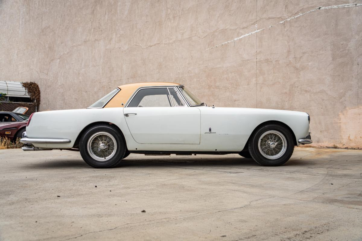 Body no. 143. Bottom-Bianco MM10319. Top-Grigio Conchiglia MM16249. Plastic and leather nero 8500. Listed as a 250 GT PF Coupe in the Pininfarina records. First series car with drum brakes and offset lever four speed transmission. The 143rd of a total of 202 Series I PF Coupes built.