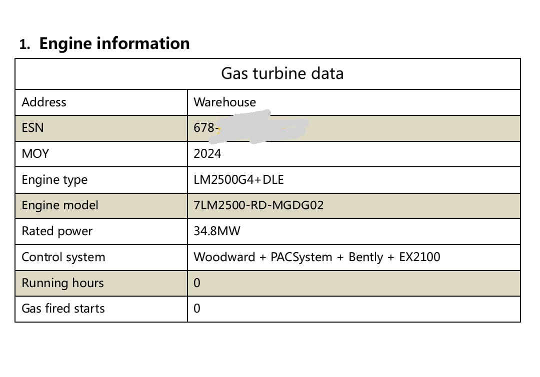 LM2500G4+DLE Core Engine | YOM: 2024 | 0 hrs | 34.8MW | Gas Only | Core Engine | Location: China Qty: 1