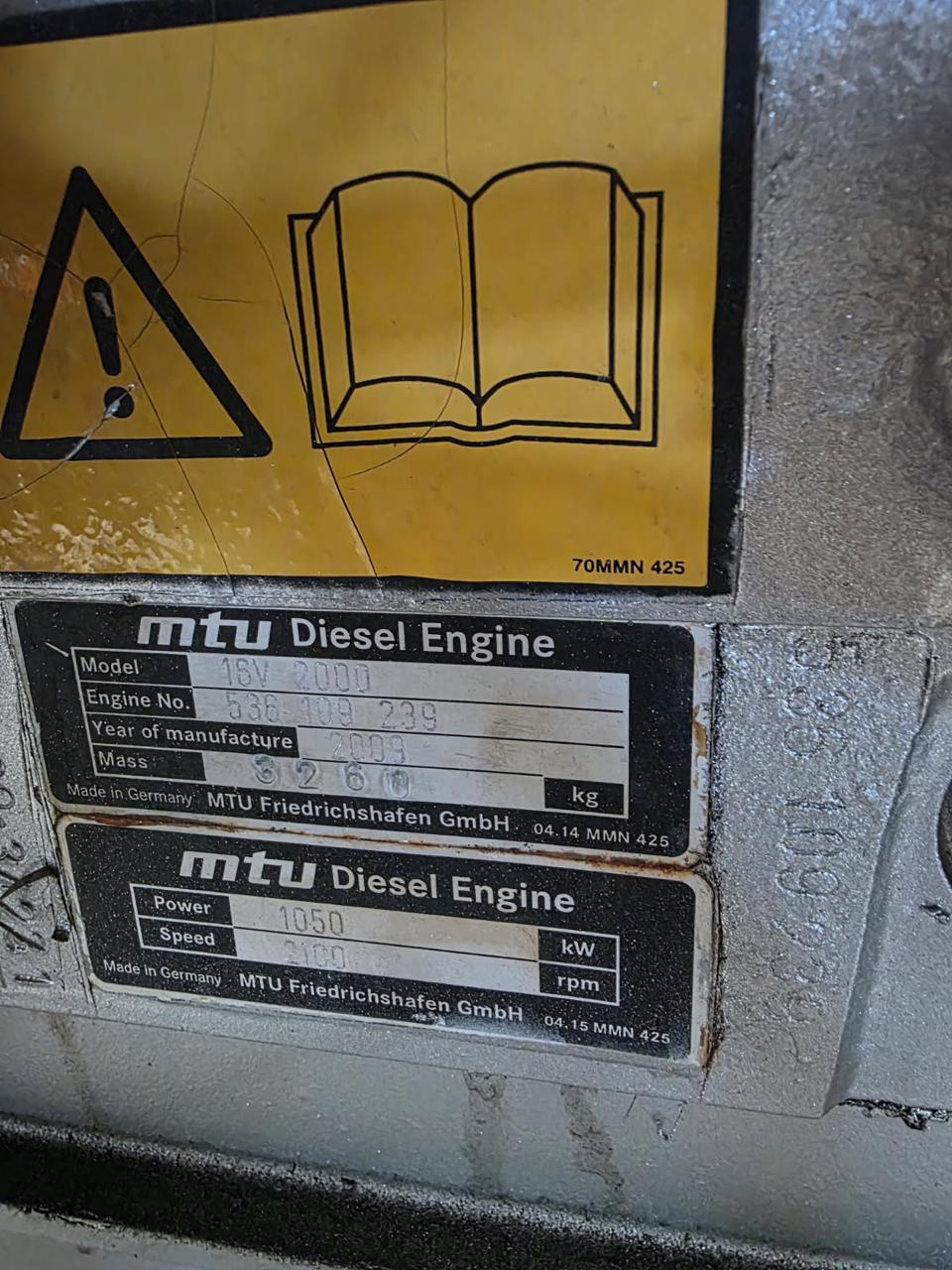 ONE OF OUR OVERSEAS CUSTOMER HAS USED 3900 HOURS FROM NEW 2X16V2000M70 ENGINES WITH AUXILIARIES AND GEARBOX FOR SALE.