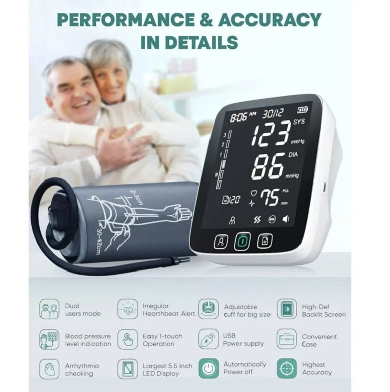 2024 Smart Blood Pressure Machine with Largest Backlit Display - Automatic Upper Arm Blood Pressure Monitor - Accurate Adjustable Blood Pressure Cuff - 200 Sets Memory, Includes Case & Batteries.