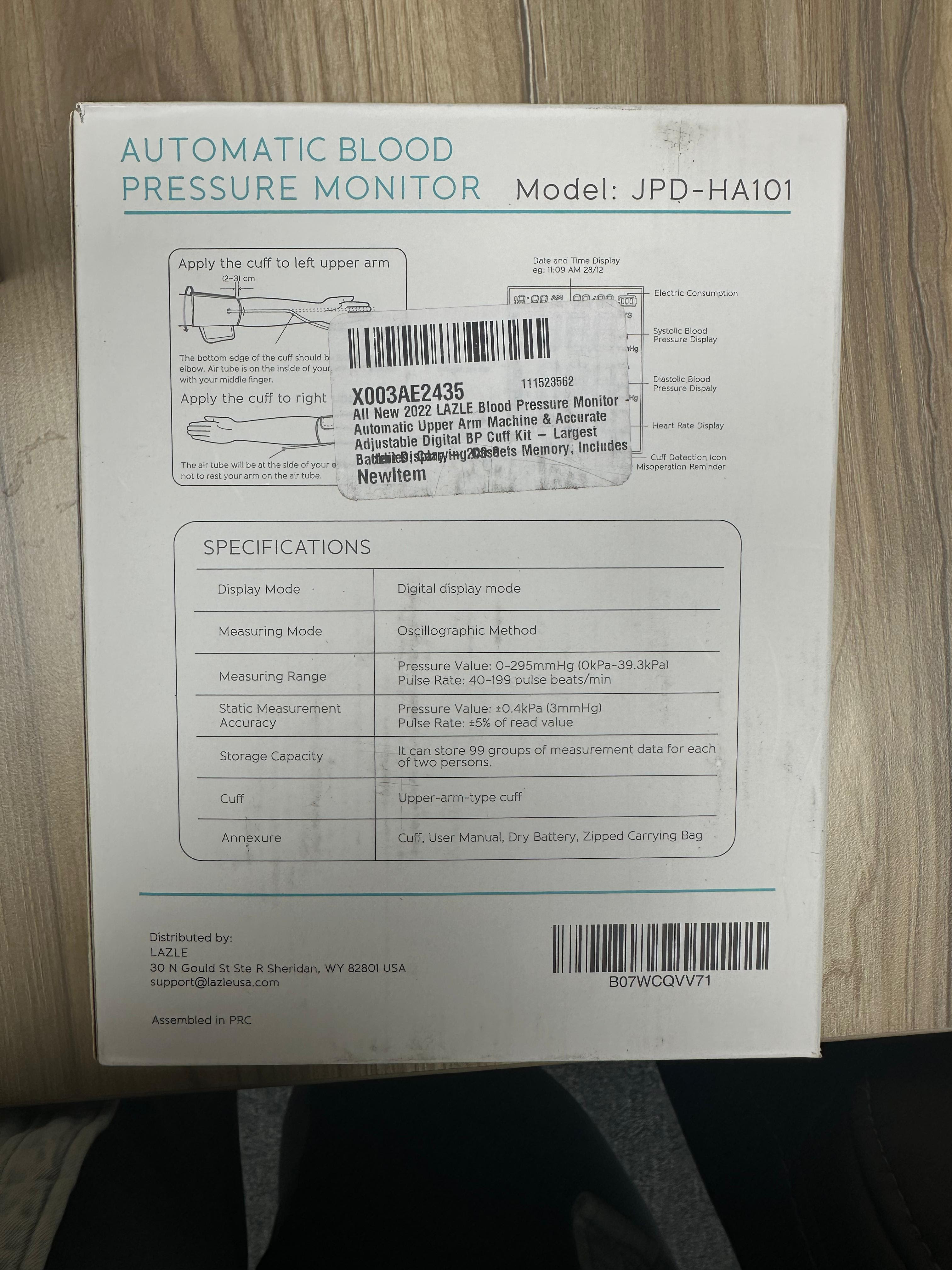 LAZLE Upper Arm Cuff Automatic Digital Blood Pressure Monitor. 7000 Units. EXW Los Angeles $9.50 Unit. Retail $79.99