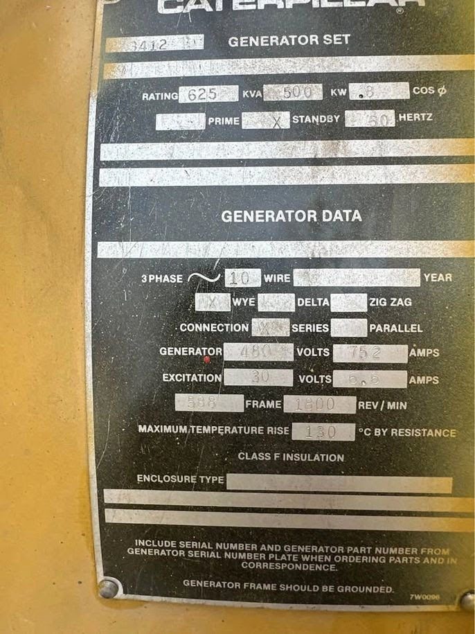 500KW, 625KVA, 99 Hour showing but they put a new control panel in it in 2020 before that it had 253 Hours, than 400 hours on the machine since it was new. No fuel tank, It was taken out of service in July. It was inside of a building and the renovating the building and they wanted to move the generator outside so they bought a cabinet unit. As is condition. Video available.