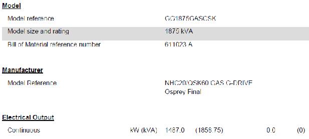 80 x CUMMINS/AGGREKO Osprey, Model NHC20-QSK60G22, 1875 kVA, 1500 KW, CONTINUOUS DUTY, 480v. 60 Hz or 400v. 50 Hz.