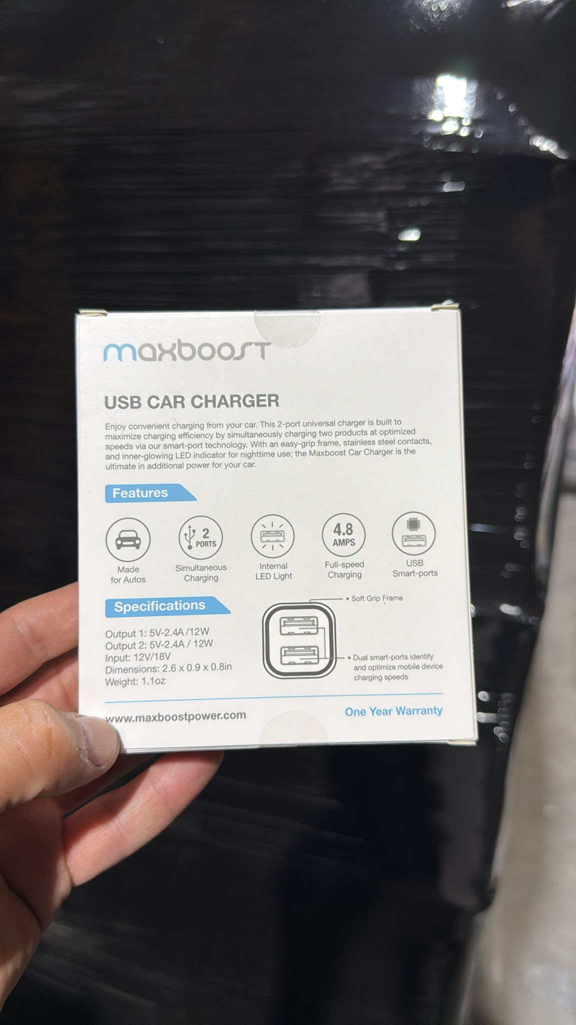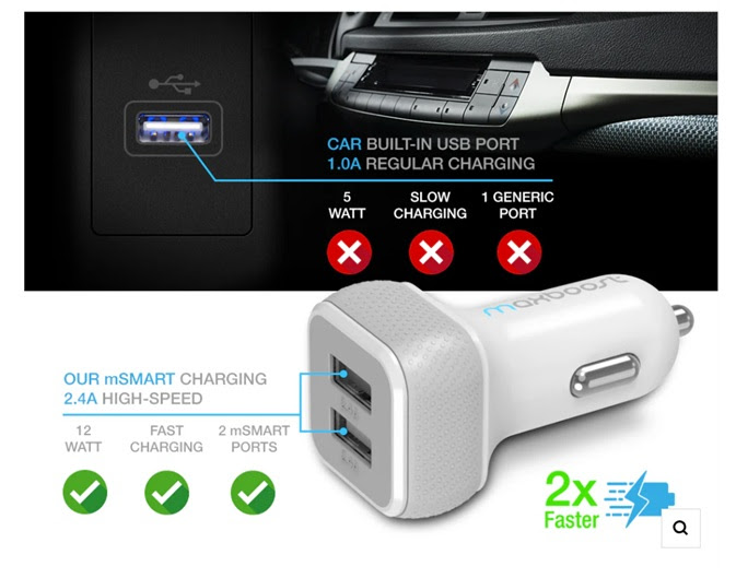 MAXBOOST Dual-Port USB Car Charger. 5200 Units. EXW Los Angeles $2.50 Unit. Retail $12.99