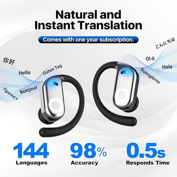 AI Translation Earbuds, 3-in-1 Multilingual Communication Wireless Earphone, Real-Time Translator for 144 Languages & Dialects, Suitable for Global Business, Tours and Studies, Black