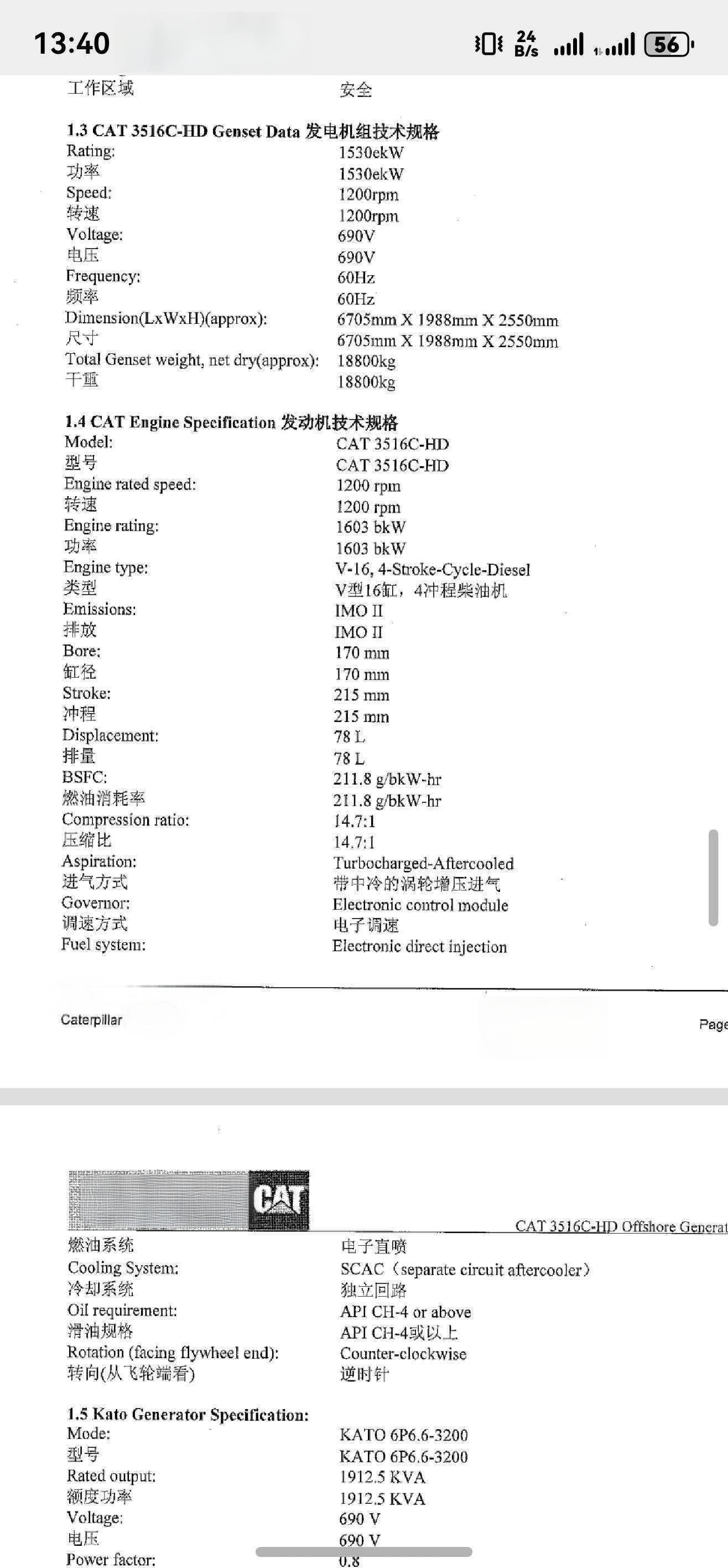 1) 5x CAT 3516C HD,year:2016,690v,60hz,