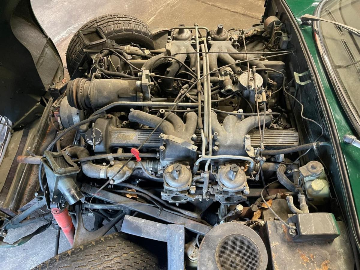 This 1972 Jaguar XKE Series III V12 Roadster is a matching numbers example with a desirable 4-speed manual gearbox. A highly original car in need of straightforward and easy recommissioning.Green with tan leather interior. Factory air conditioning. Very solid car with a clean underside. Not currently running as it has been parked in storage for the last few years. An exciting opportunity for any collector or enthusiast of the marque. This ever-desirable Jaguar is ready for its next lucky owner. Dont miss the chance to own this iconic V12 Roadster with 4-speed and matching numbers.