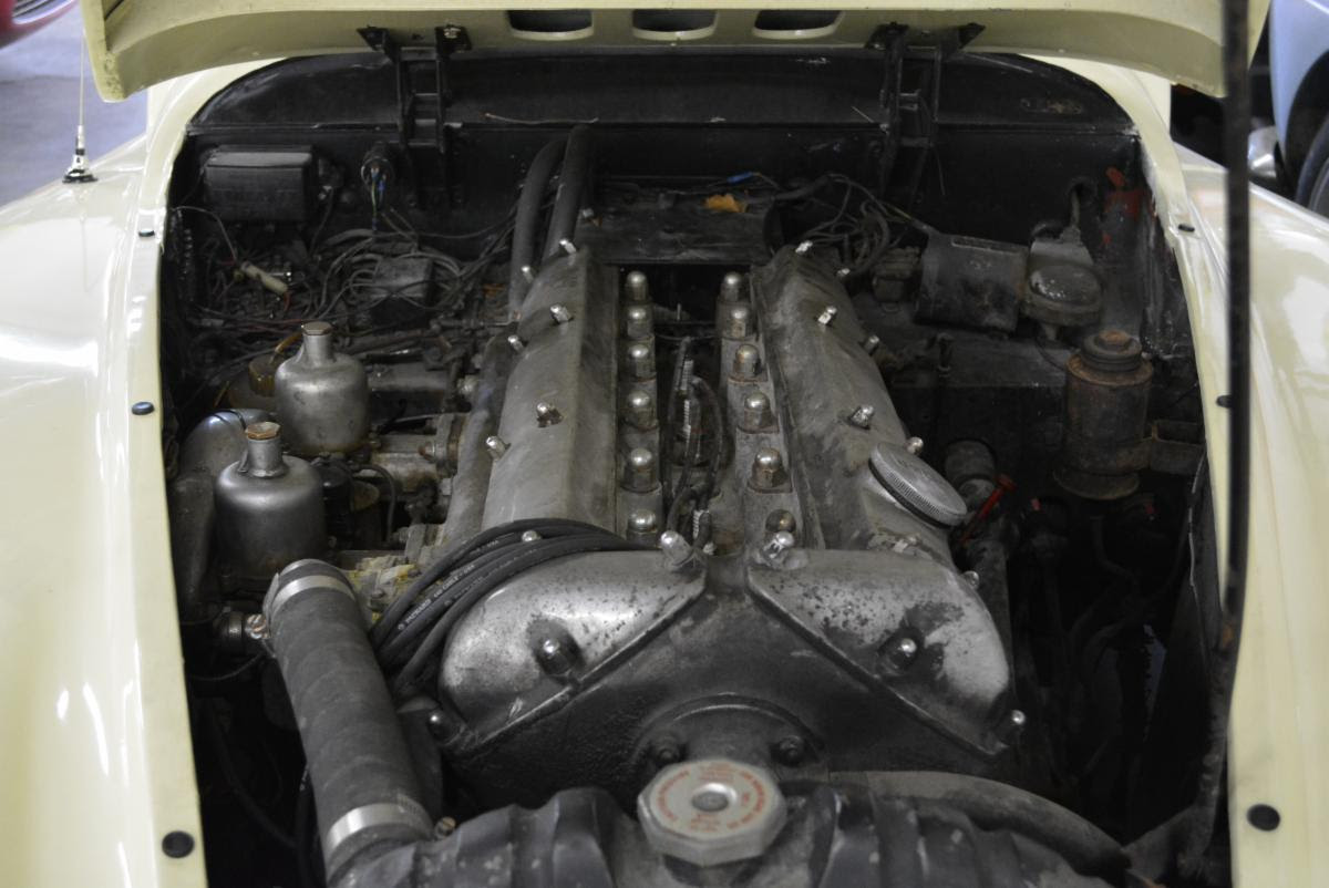 This 1957 Jaguar XK140 Drophead Coupe is a matching numbers example with factory overdrive. Primrose yellow with burgundy interior and black soft-top. Would benefit from minor cosmetics and servicing as its been off the road and in storage for the last few years. The previous owner owned the car for 40 years. It runs and drives and is mechanically sound but should be serviced prior to active use.