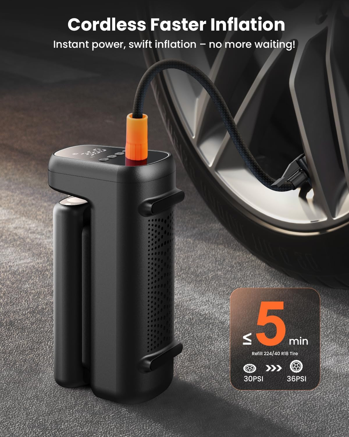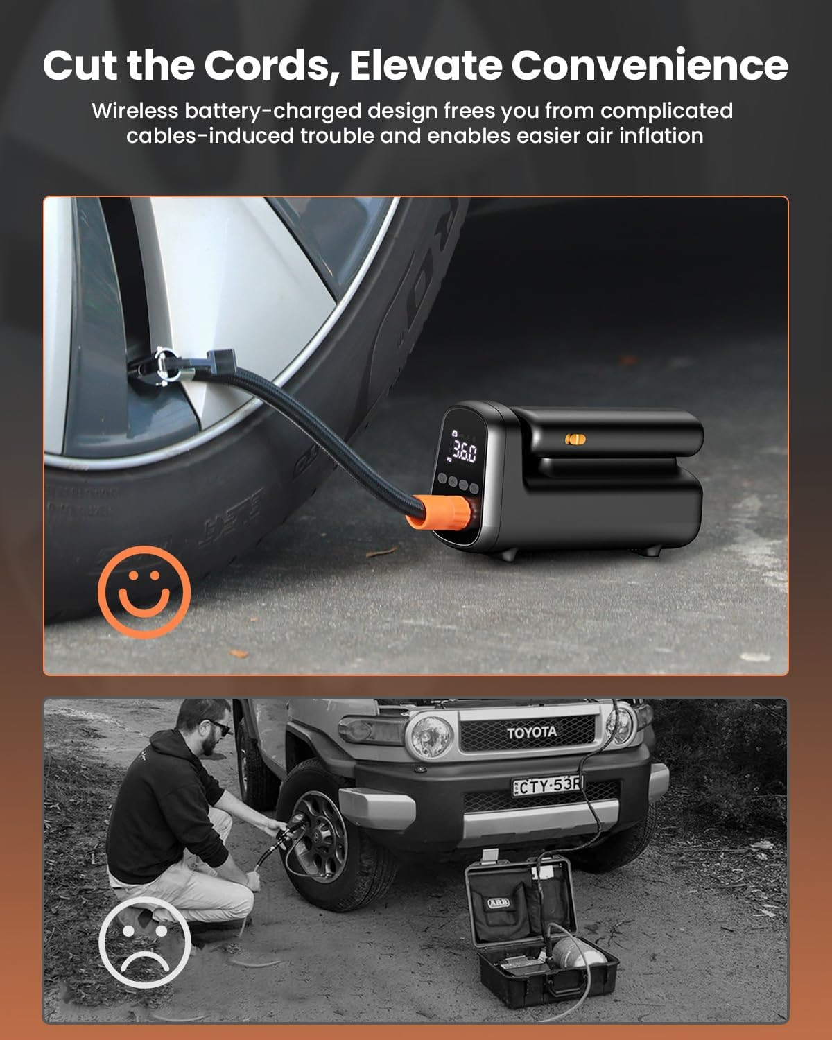 Portable Tire Inflator Air Compressor: SOWINK 2024 New 150 PSI Cordless Air Pump, 7800mAh Rechargeable Fast Inflation Electric Bike Pump for Adults Heavy Duty Electric Tricycle, Car, Motorcycles