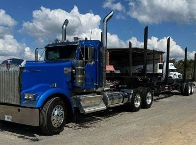 2024 Kenworth W900L Tractor, 122,000 miles Warranty and 2023 Pitts LP40 Log Trailer - Package $255,000