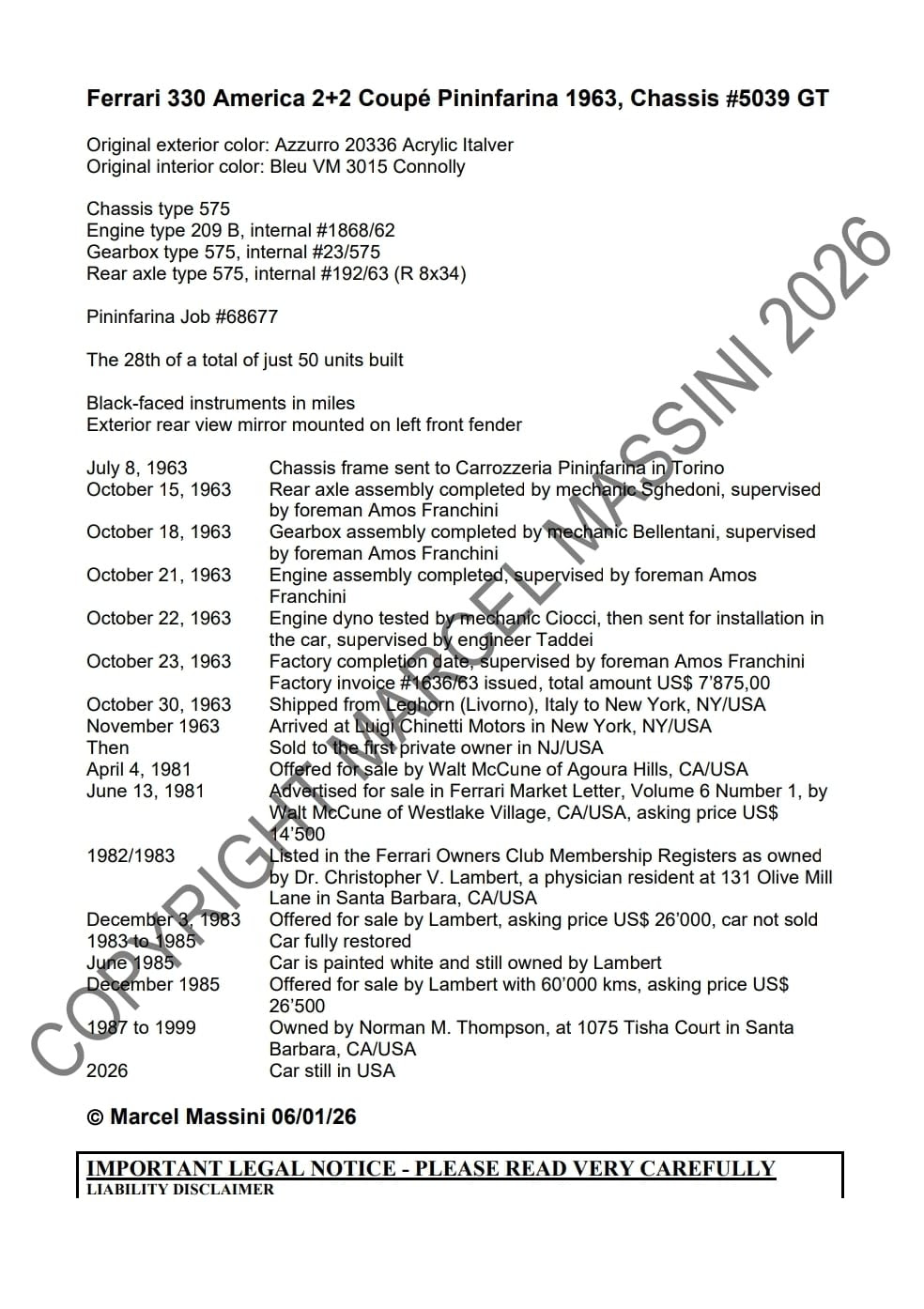 Documented by Ferrari historian Marcel Massini