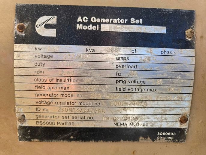 Cummins 230KW 3 phase Generator