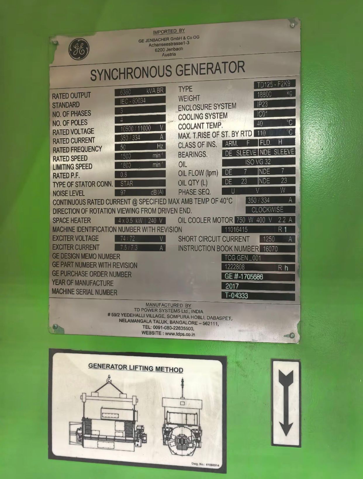 Condition: The unit is operating normally and is still being used to generate electricity within the project; it is in perfect condition.