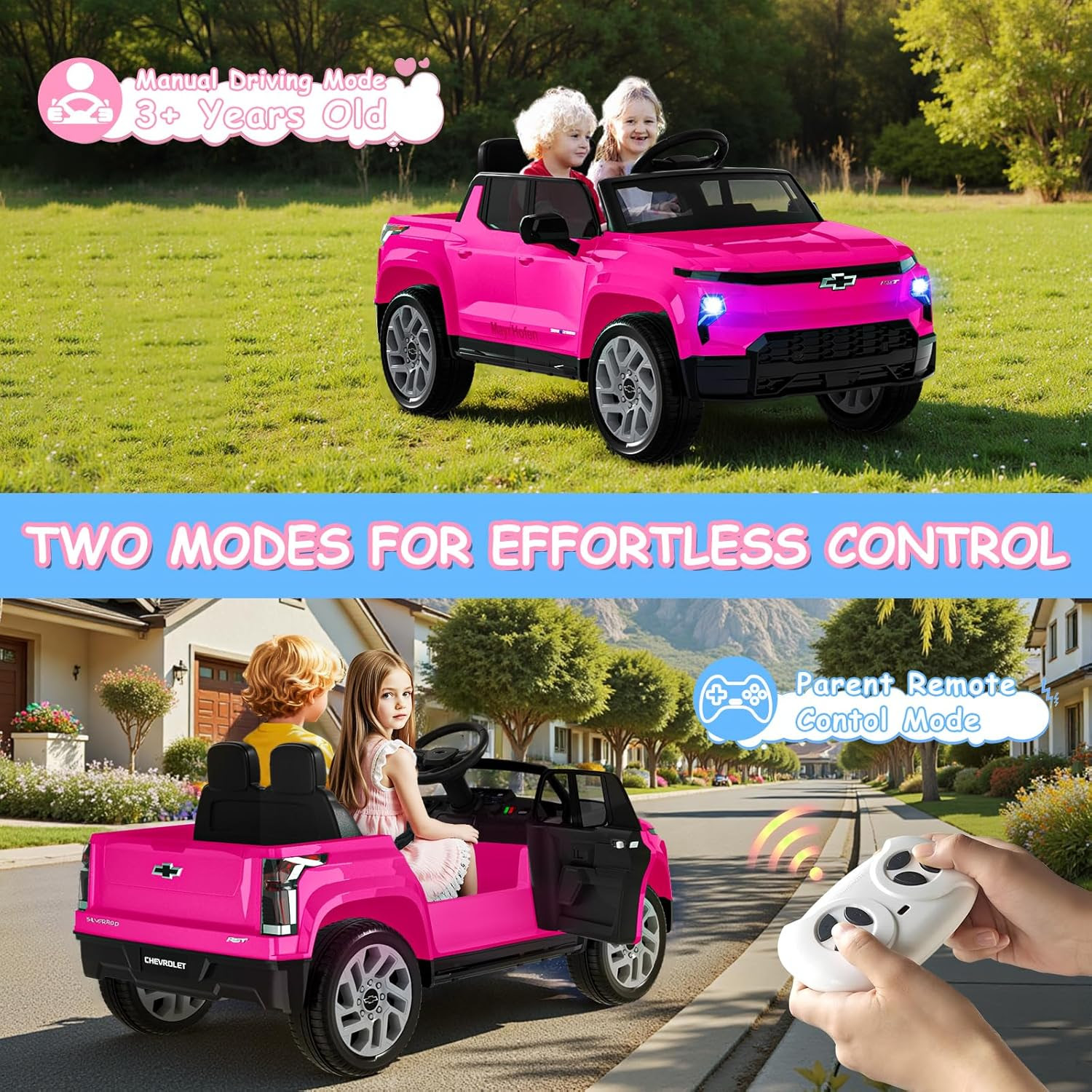 24V 2 Seater Ride on Car Toy - Licensed Chevrolet Ride On Truck Car, Electric Car Toy w/Parent Remote Control, 4-Wheeler Suspension, 3 Speeds, Led Light, Bluetooth, Music, Carros Eléctricos Para Niños.