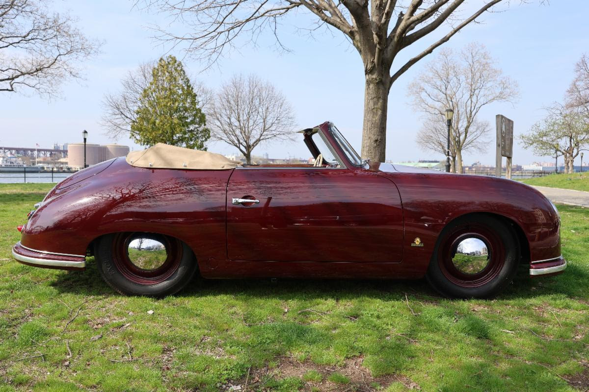 One of only 156 Reutter-bodied Cabriolets made in 1951, this very early Pre-A 356 Cabriolet, features a split windscreen and body-to-bumper styling and is finished in the original color Pascha Red (523) with a Tan cloth top, boot cover, and Tan interior. Completed on September 8, 1951, and first delivered to Buenos Aires, Argentina, this Pre-A remained in South America until purchased by a German collector in the 1980s. The 356 has since been restored several times over the years, each time to a very high standard, first in 1990 and again recently. European Collectibles has recently rebuilt the top end of the engine, sorted out the shifter mechanism, and the braking system was also rebuilt. The 356 is well-prepared for top-down touring, rallies, or competition on the Concour events.