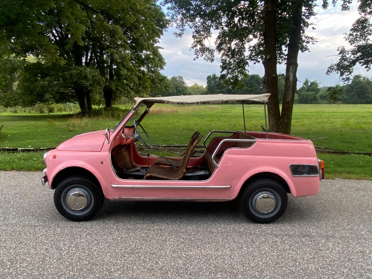 This charming 1964 Fiat 500 Jolly Giardiniera LWB by Ghia is a rare Long-wheelbase variant of the iconic beach car - one of the most playful and collectible microcars of the era. Finished in a vibrant pastel pink with signature wicker seats and a fringed surrey top, its a coach built classic full of Italian character and summertime charm.