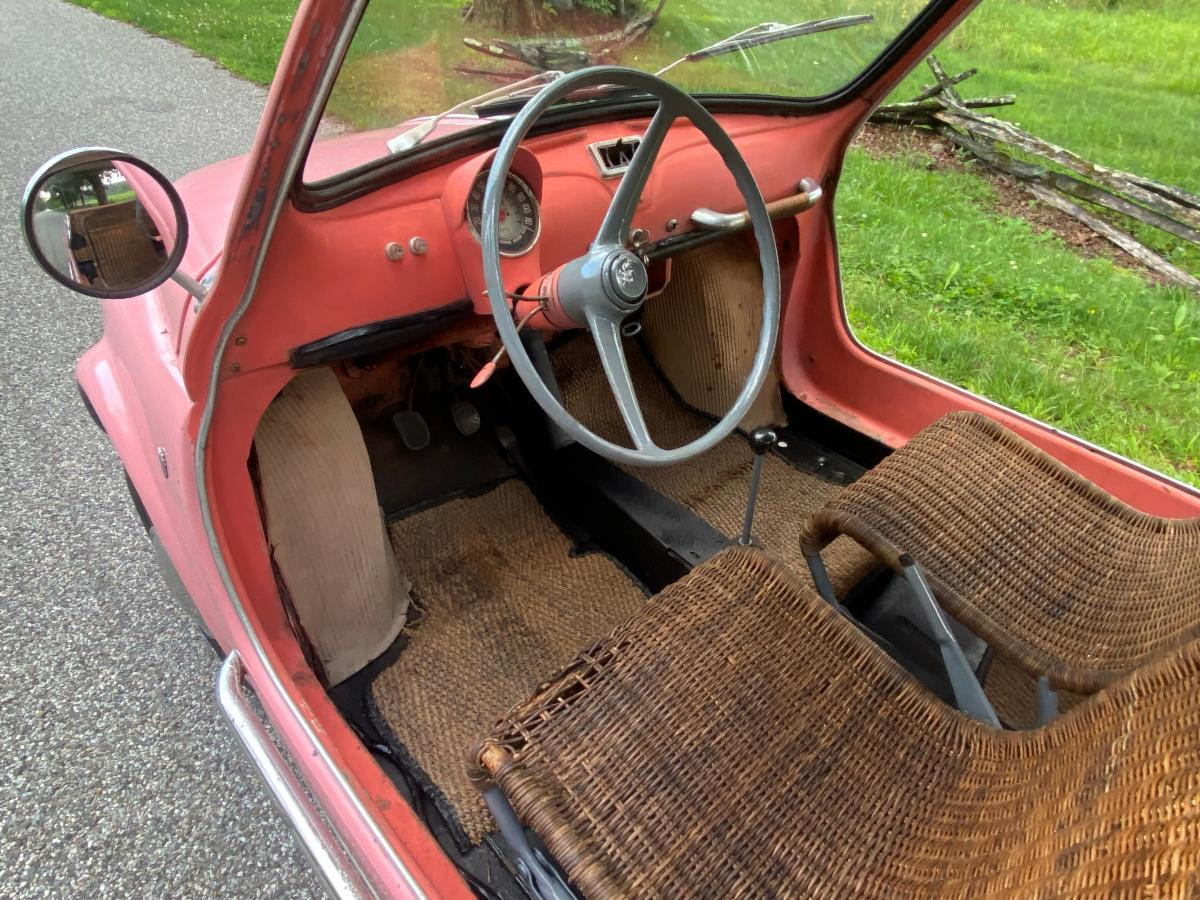 While the car runs and drives very nicely, it would benefit from some cosmetic attention to bring it to the next level. The paint shows age in areas, and the wicker interior would benefit from tidying up or partial reweaving. The surrey top shows wear but is intact.