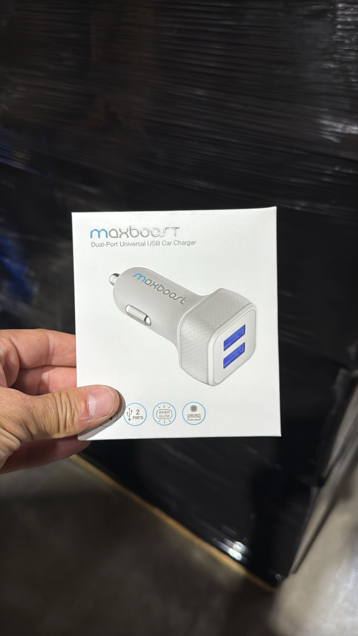 MAXBOOST Dual-Port USB Car Charger. 5200 Units. EXW Los Angeles $2.50 Unit. Retail $12.99