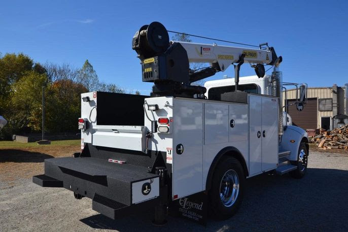 170,034 miles Paccar PX-7 diesel Allison push button RDS automatic transmission NON CDL / 26K GVWR Palfinger 10,800 pound crane Wireless remote Pal Pro tool / service body Hydraulic outriggers Hydraulic air compressor 2 sets of tool drawers Work lights Rear work bumper Very nice seats / interior Cold A/C Very good tires Just serviced Very nice and work ready!