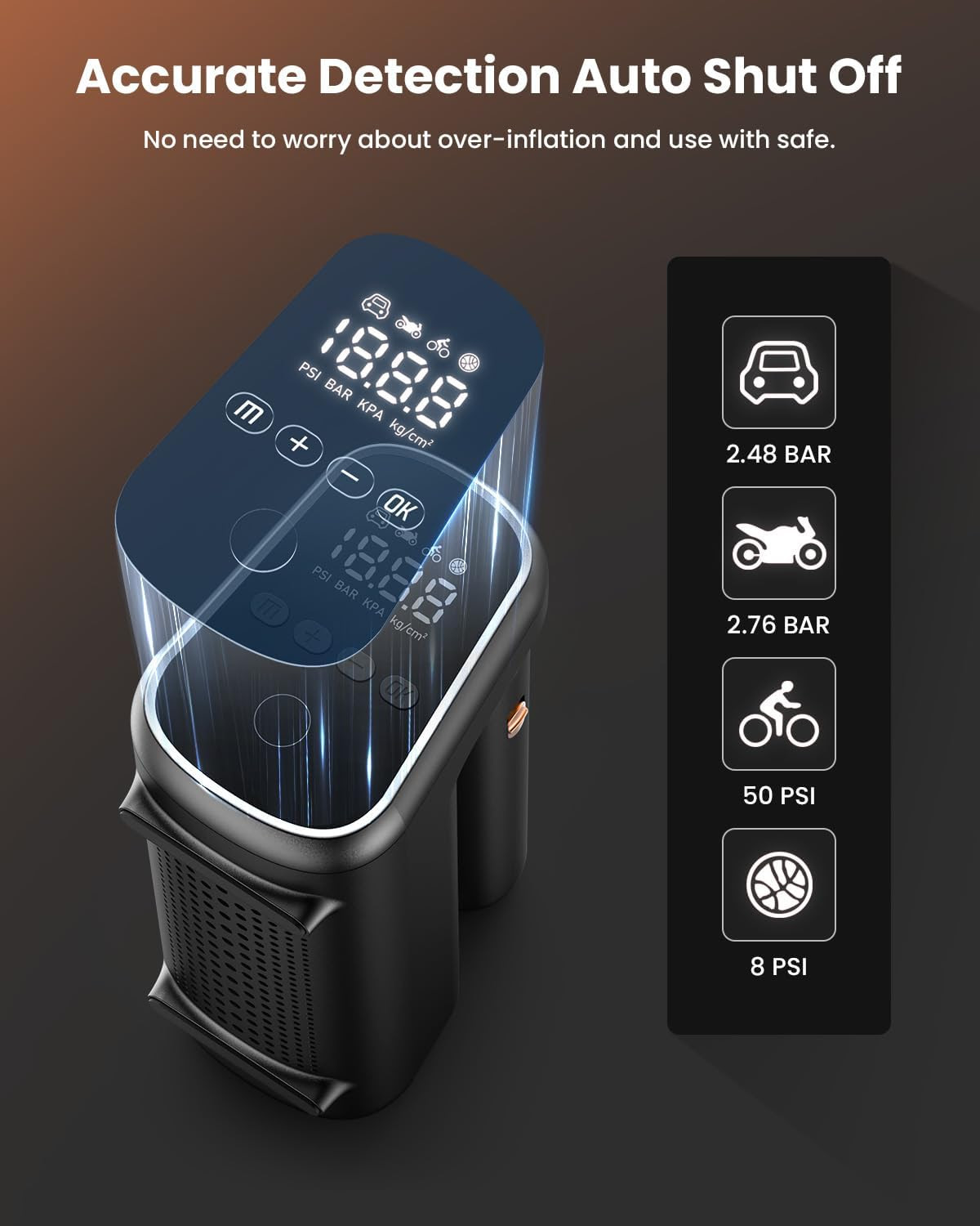 Portable Tire Inflator Air Compressor: SOWINK 2024 New 150 PSI Cordless Air Pump, 7800mAh Rechargeable Fast Inflation Electric Bike Pump for Adults Heavy Duty Electric Tricycle, Car, Motorcycles