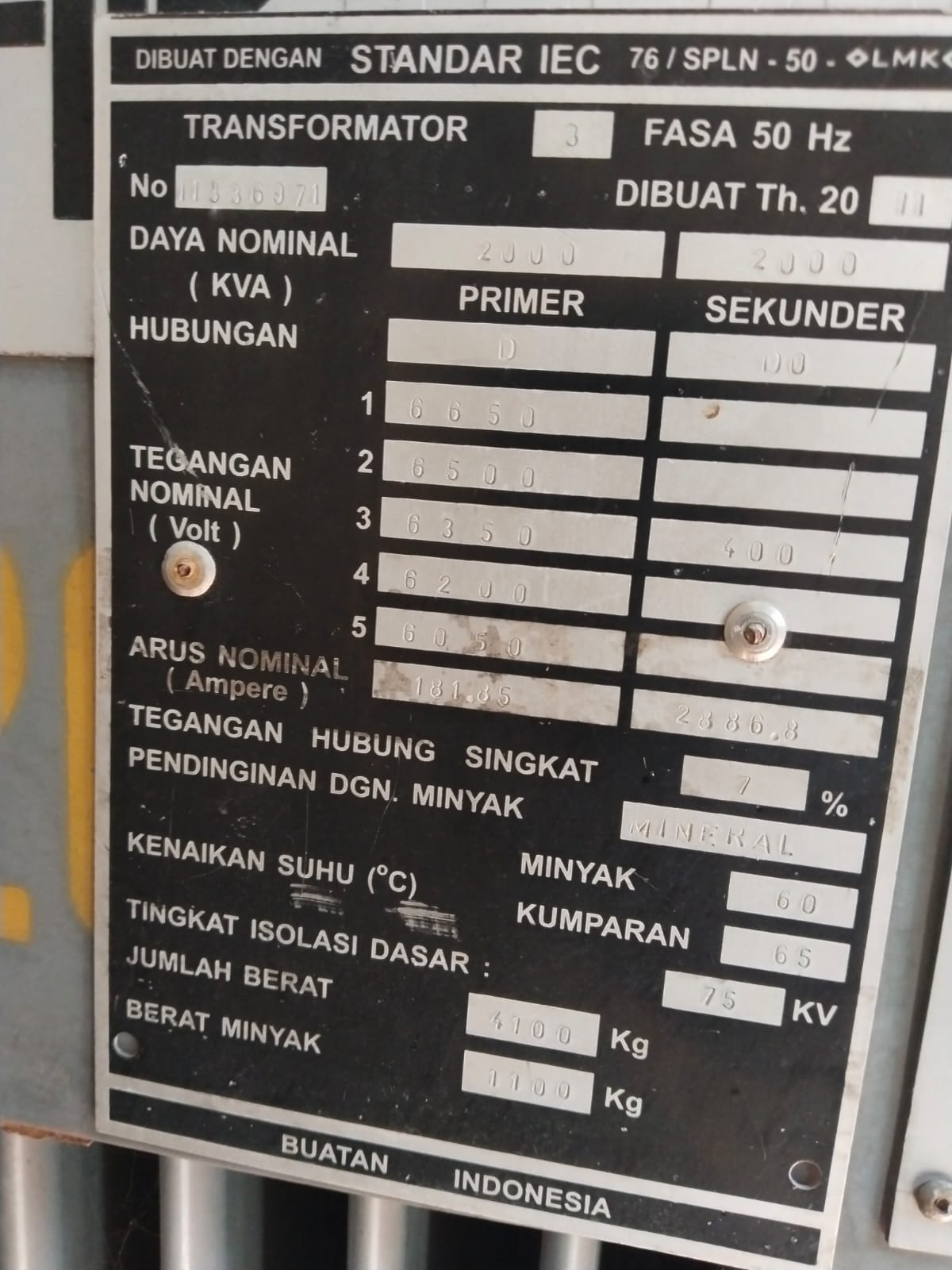 16 Nos - Scheider , 2000 KVA , 50 Hz Transformers , as per the enclosed photos .