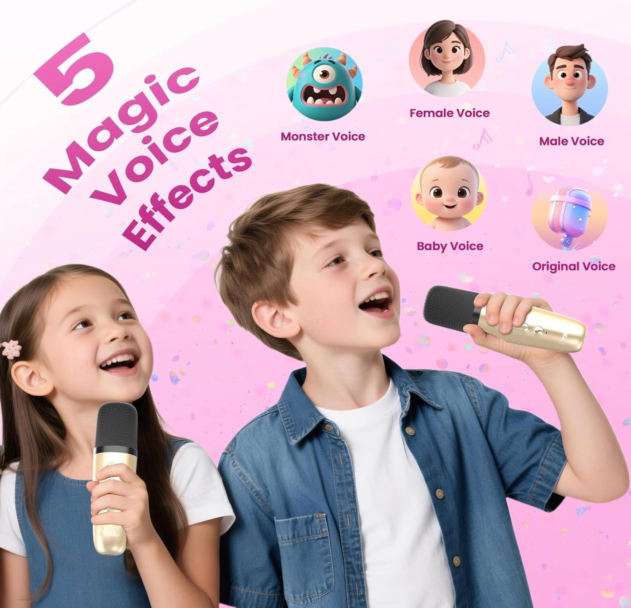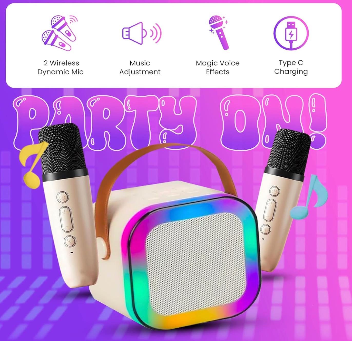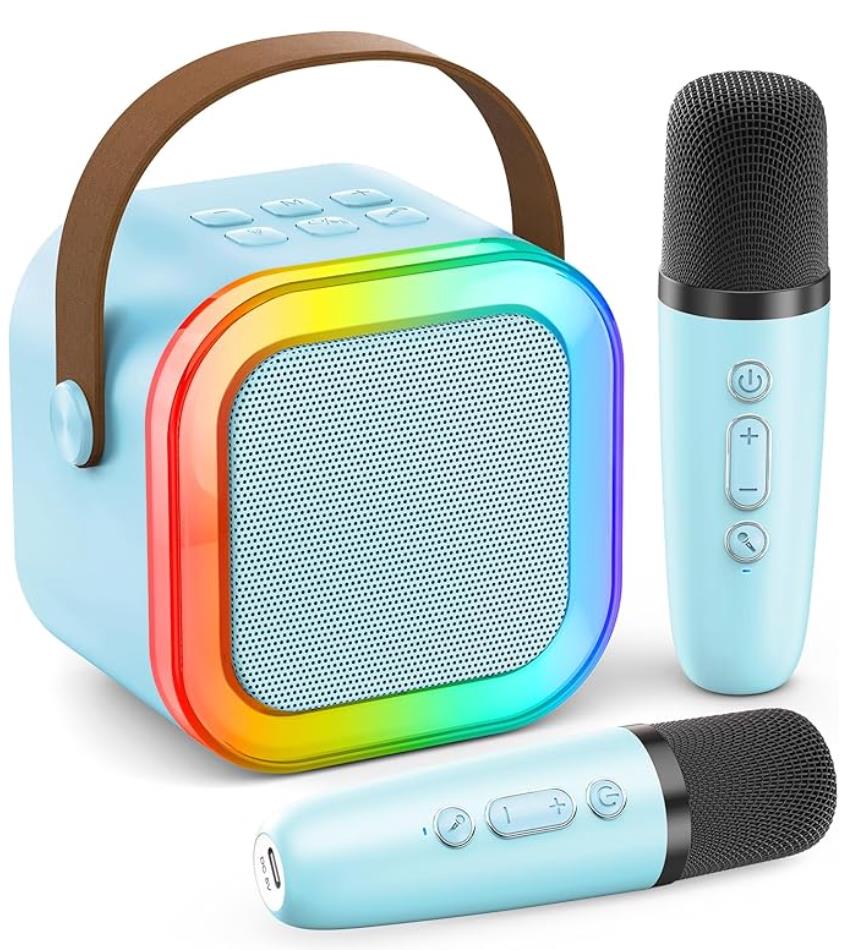 Mini Karaoke Machine for Kids Adults, Portable Bluetooth Speaker with 2 Wireless Microphones, Trendy Birthday Gifts Toys for Girls Ages 3, 4, 5, 6, 7, 8, 9, 10+ Years Old Home Family Party (Pink)
