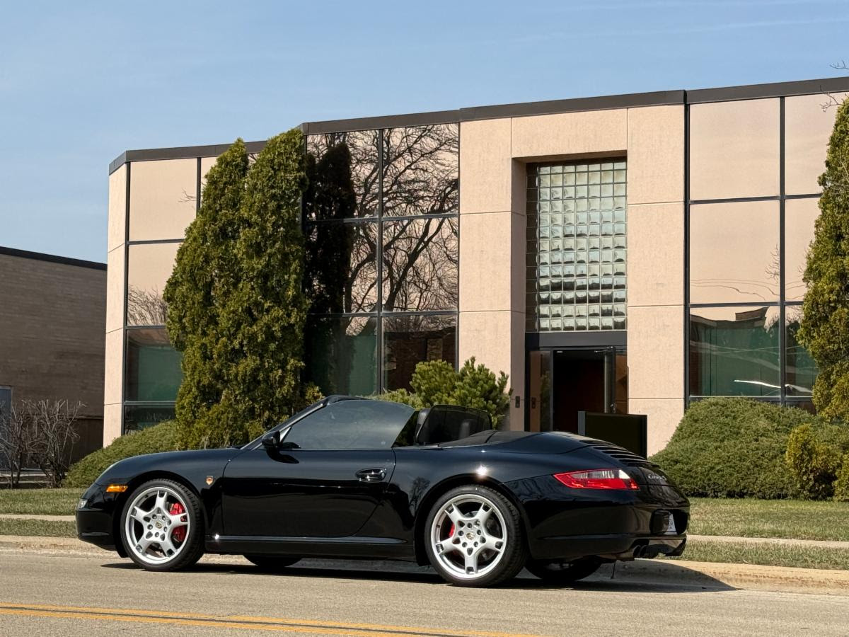 This 2006 Porsche 911 Carrera S Cabriolet is an extremely desirable 6-Speed manual example and an increasingly collectible and sought-after 997 generation 911. Triple black with 98k miles. This Carrera S presents in excellent condition throughout and is offered with a clean Carfax report. The hood currently has a carbon fiber wrap that was applied by the previous owner for aesthetic reasons and can be easily removed if desired. This beautiful car was clearly well cared for and runs and drives fantastic. Sure to satisfy any Porsche enthusiast.